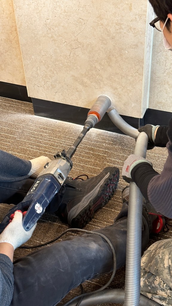 보통은 시공 현장 매니저 1인과 시공 2인이 기본 1팀입니다. (간단할 경우는 시공 매니저가 시공을 겸해 2인이 1팀 되기도 합니다.)