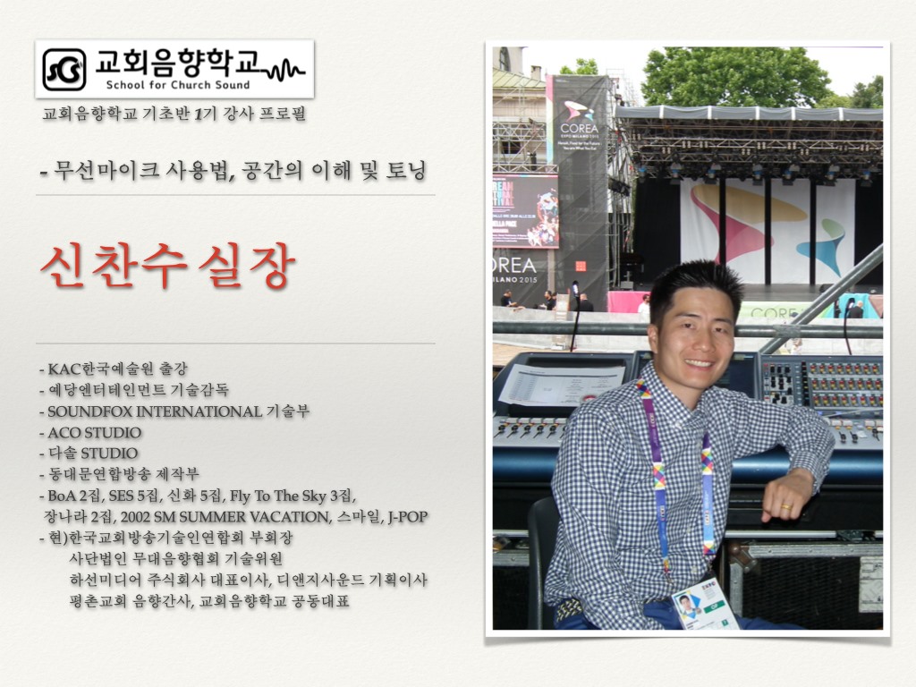 아래에 그 내용을 안내해 드리니, 필요하신 분들 모두 등록하셔서 교회 음향에 대해 배우시면 좋겠습니다.