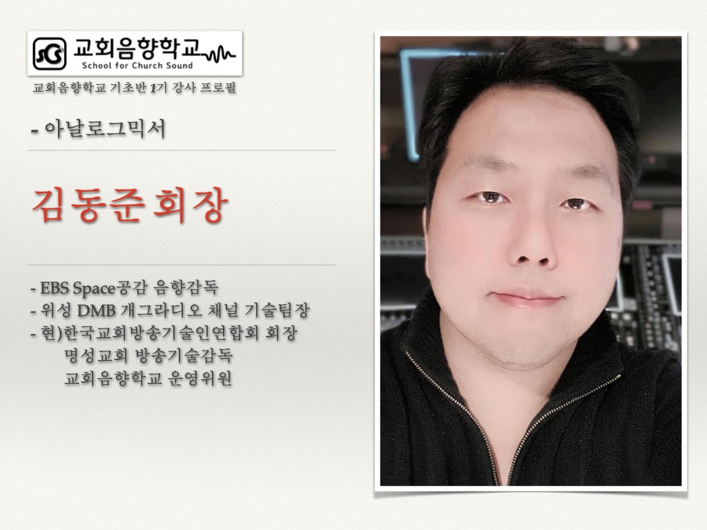 교회음향학교에서 준비한 첫 번째 수업, ‘교회음향기초반’이 시작됩니다. 100% 온라인 진행으로 장소에 구애받지 않고 전국 어디서나, 해외에서도 들으실 수 있습니다. (해외체류선교사 등록비 무료 /증빙서류 필요, 현재 국내 체류 선교사 제외)
