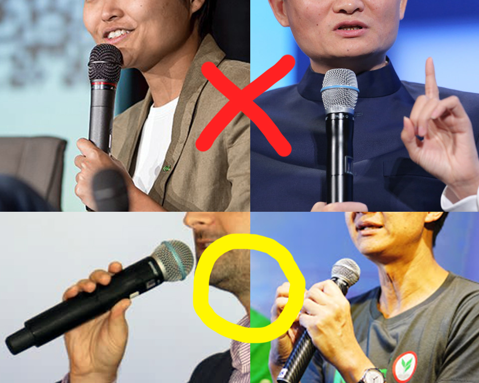 잘 못된 마이크 사용법 중 가장 대표적으로 잘 못하고 있는 사용법입니다. 저도 목사이지만, 목사님들 중에 이렇게 잘 못 사용하시는 분들이 너무 많고, 그 때문에 애꿎은 음향 담당자만 애를 먹습니다.