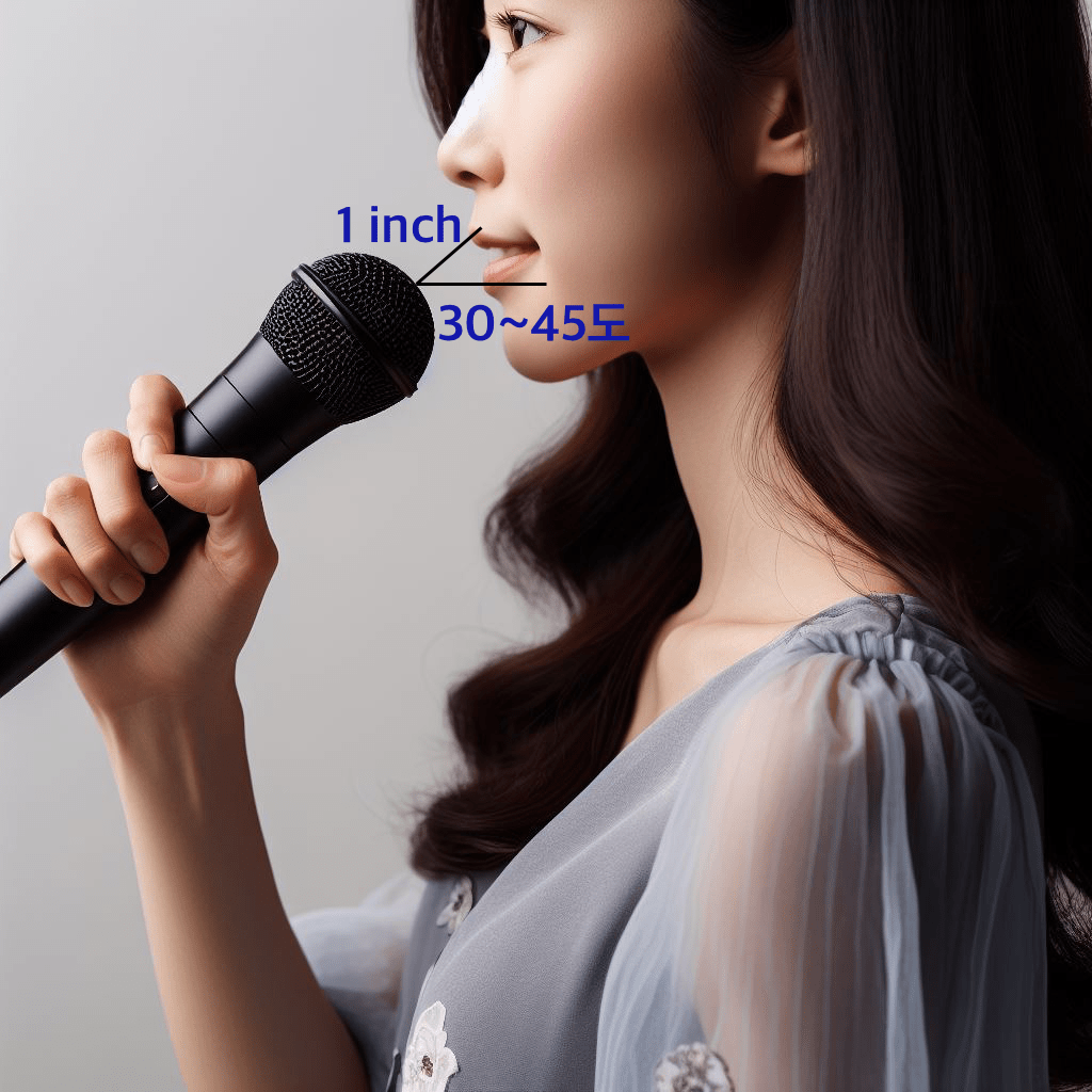 마이크를 가까이 사용하게 되면 마치 새로운 음향 시스템으로 바꾼 것처럼 소리가 쉽게 크게 나오게 됩니다. 물론 마이크와 입의 적정한 거리는 손가락 2~3개 두께 정도면 됩니다.