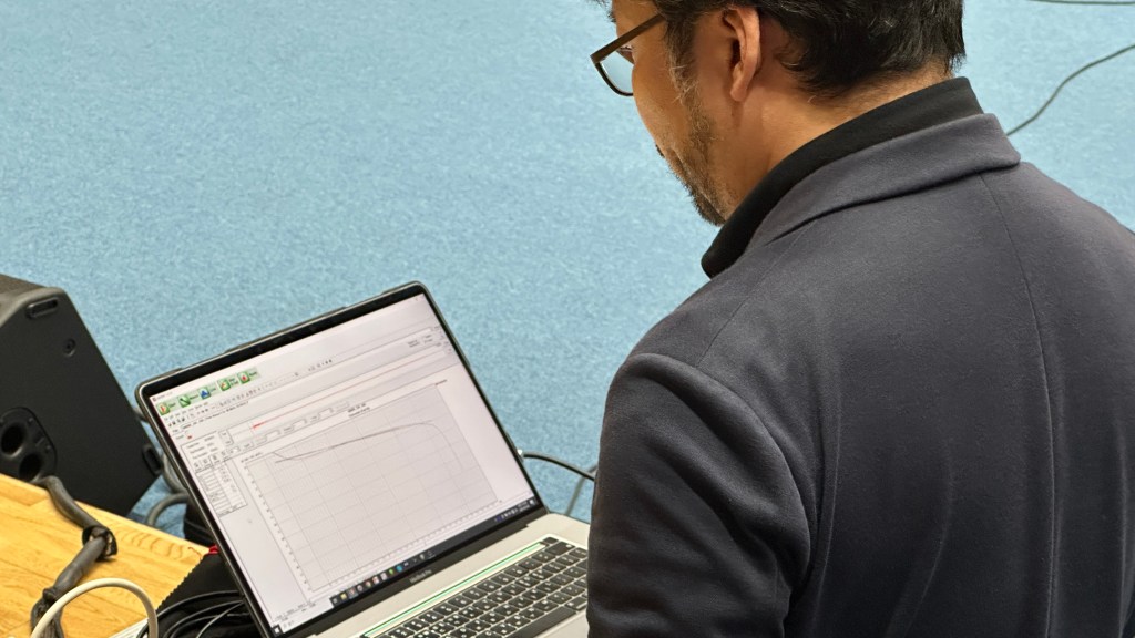 기본적으로 공간의 음향 특성을 파악하기 위해 음향 측정을 하고, 사운드의 변형을 일으키는 요소들과 정도를 기술적으로 체크를 합니다. 음향 측정용 전용 마이크와 측정 전용의 프로그램, 그리고 음향 전문가가 측정 방법과 내용을 정하고 진행하여 분석을 하게 됩니다.
