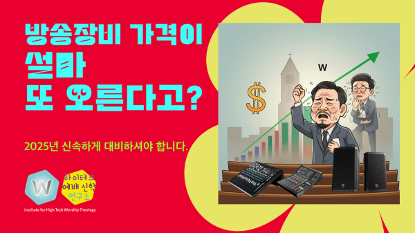 코로나 때 우리는 방송 장비 가격이 지속적이고 큰 폭으로 상승한 것을 기억합니다.적게는 25%에서 많게는 100% 이상 상승한 제품들이 있었습니다.그 때 주저하고 결정을 늦게 내리다가 더 많은 돈을 들여 장비를 갖추거나, 그 마저 갖추지도 못한 교회들이 있었습니다.가격 상승이 많이 된다고 아무리 말씀을 드려도 믿지 않고 결정을 늦게 내리는 바람에 지출하지 않아도 되는 재정을 낭비한 교회들이 적지... Continue Reading →
