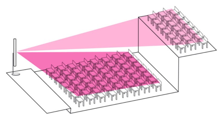 컬럼 어레이의 또 다른 핵심 기술은 소리를 위아래로 퍼뜨리지 않고, 청중이 있는 높이로만 쏘아 보내는 능력입니다.