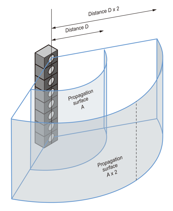 이 파면의 차이는 거리에 따른 소리 크기 감소율에 결정적인 영향을 미칩니다.
