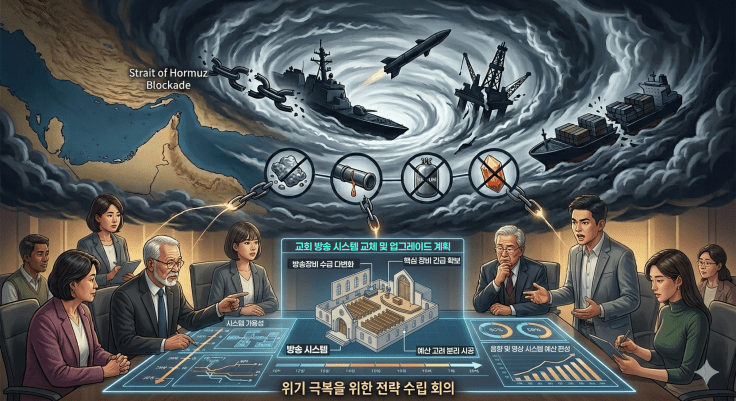 최근 중동 지역의 군사적 긴장 고조와 호르무즈 해협 봉쇄 위기는 단순한 국제 뉴스를 넘어, 우리 교회 예배 환경 구축에 직격탄을 날리고 있습니다. 2022년 팬데믹과 우크라이나 전쟁으로 시작된 공급망 혼란이 이제‘중동발 퍼펙트 스톰’이라는 더 큰 파도로 다가오고 있습니다.